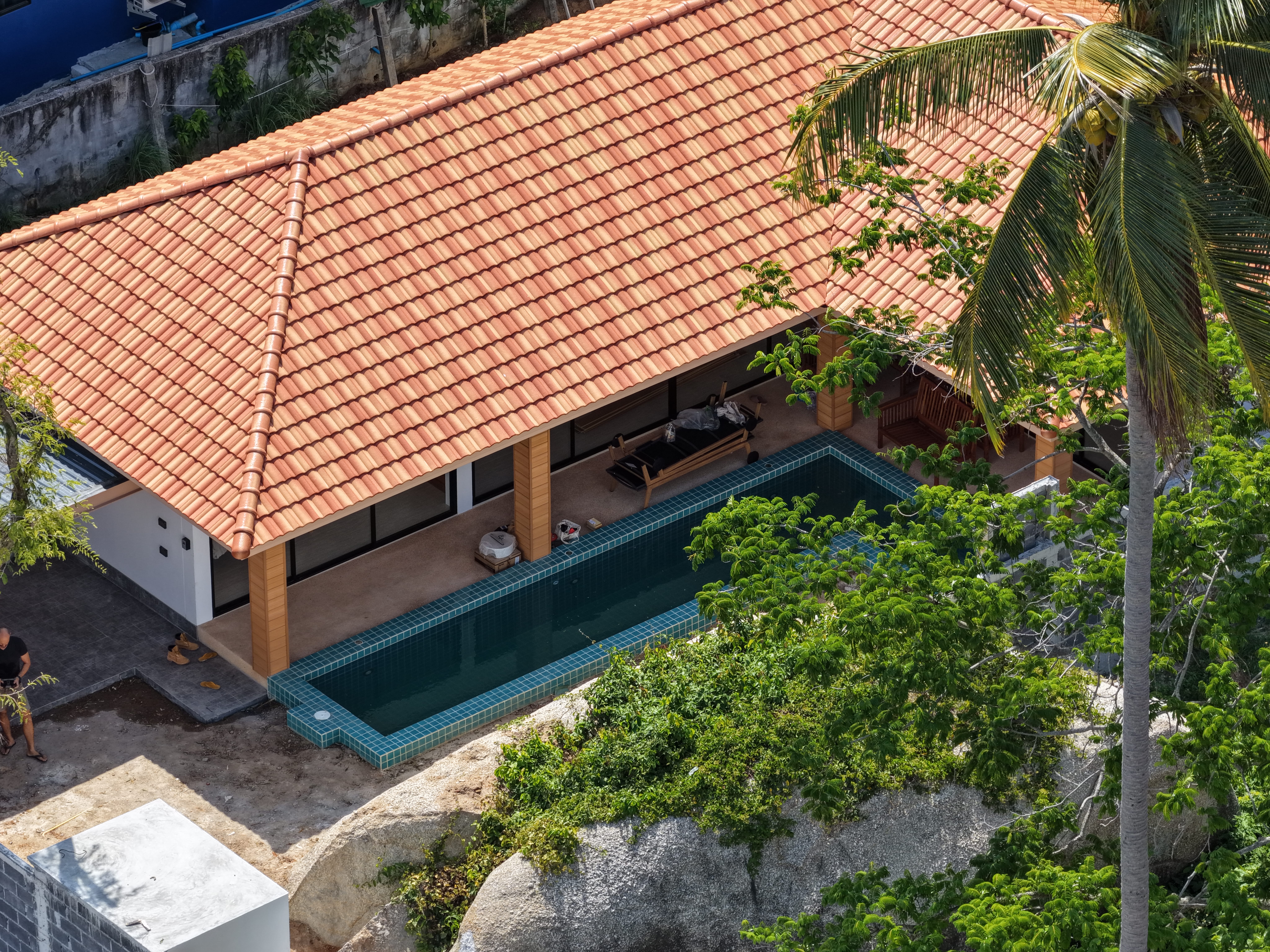 Z prostorné terasy se dostanete přímo do osvěžujícího bazénu. Vychutnejte si nádherné západy slunce a relaxujte na nedaleké pláži, kam se dostanete během pár minut.