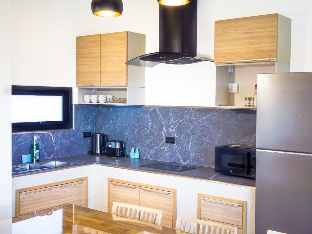 The villa has everything you need for a comfortable stay: smart TV with a wide range of channels, washing machine, fast Wi-Fi, stylish LED lighting and wooden accessories.