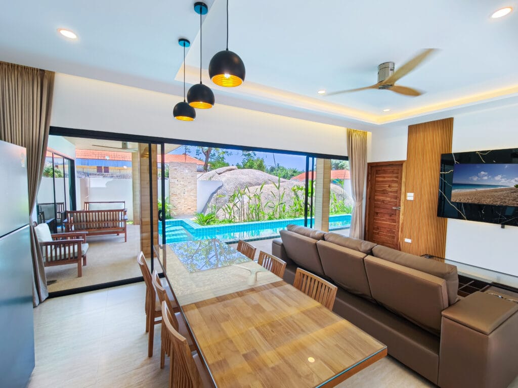 Villa Lamai Seaside je plně vybavená vilka se 3 ložnicemi 3 koupelnami a bazénem jen 300 metrů od pláže Lamai na ostrově Koh Samui