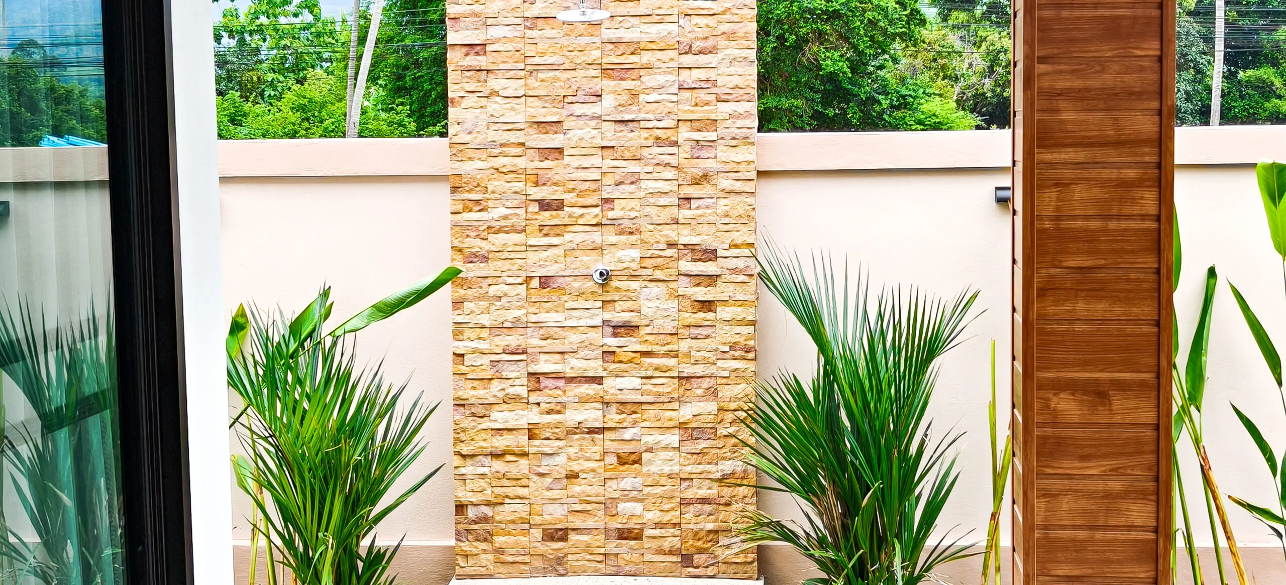Celá vila je obehnána vysokou zdí a bránou pro kompletní soukromí.